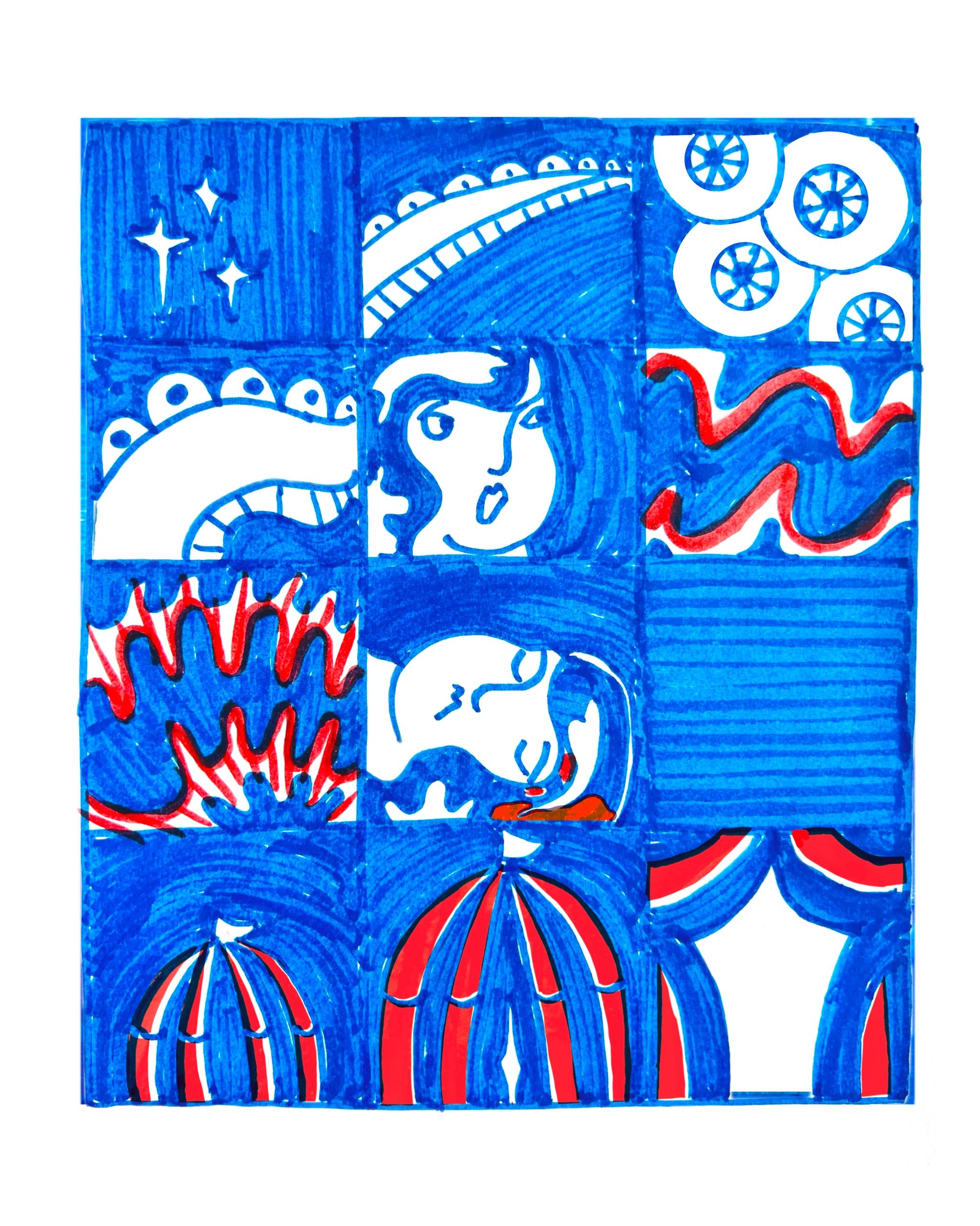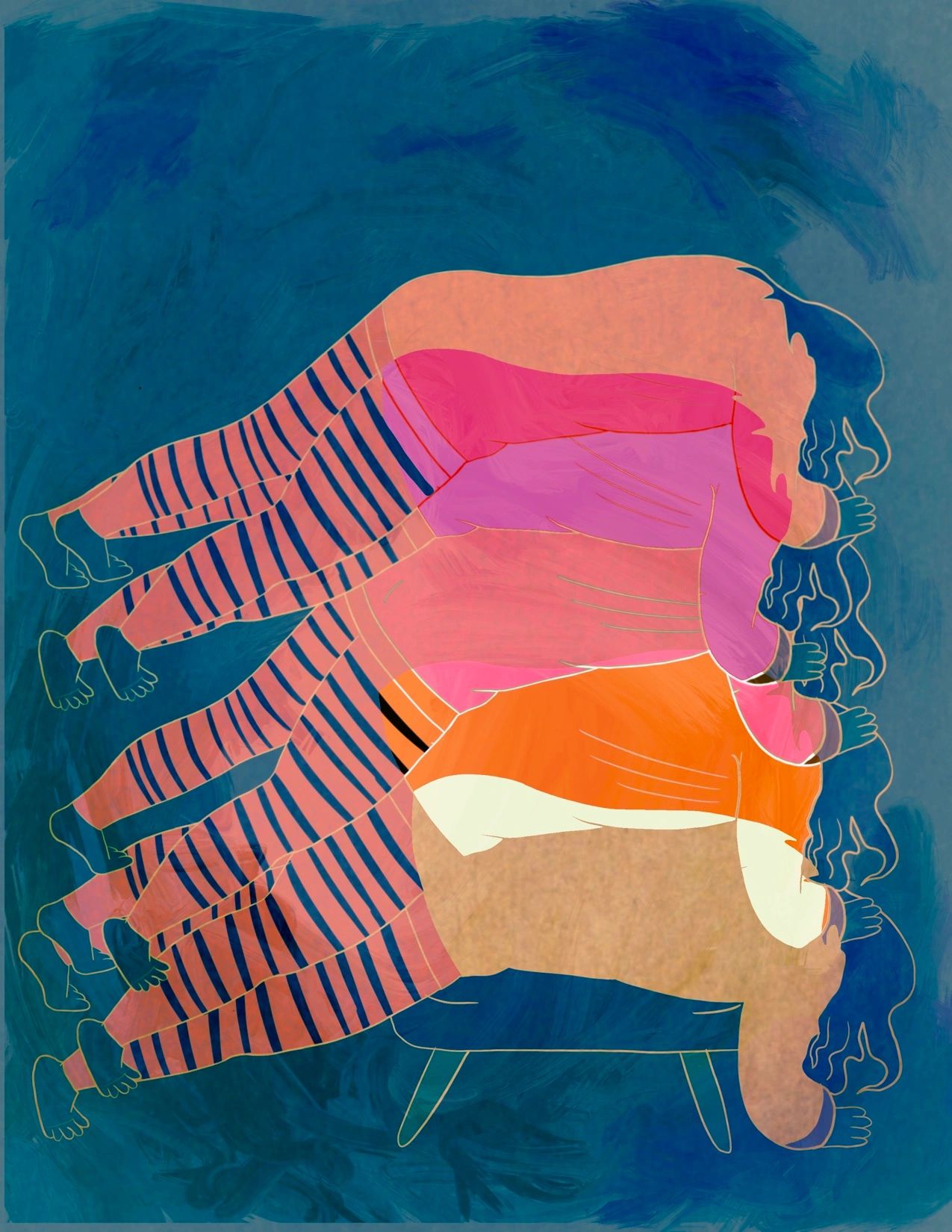 Working to bring joy to the public, Harnest uses bold shapes and bright, saturated colours to create images in service of mental health and disability advocacy, as well as illustrations that remind us of the magic and surprise of daily life and togetherness.